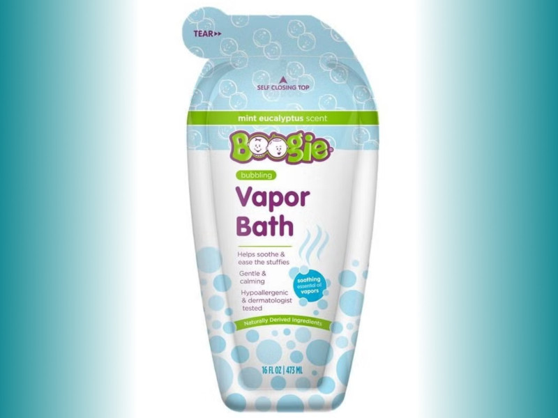 Boogie Bubbling Vapor Bath is designed to ease cold and allergy symptoms in children through vapors derived from eucalyptus and peppermint essential oils. The formulation excludes menthol, parabens and phthalates.